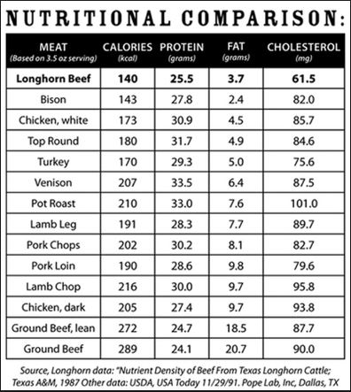 The nutritional value of Texas Longhorns is another little known reality. Longhorn beef beats other meats on