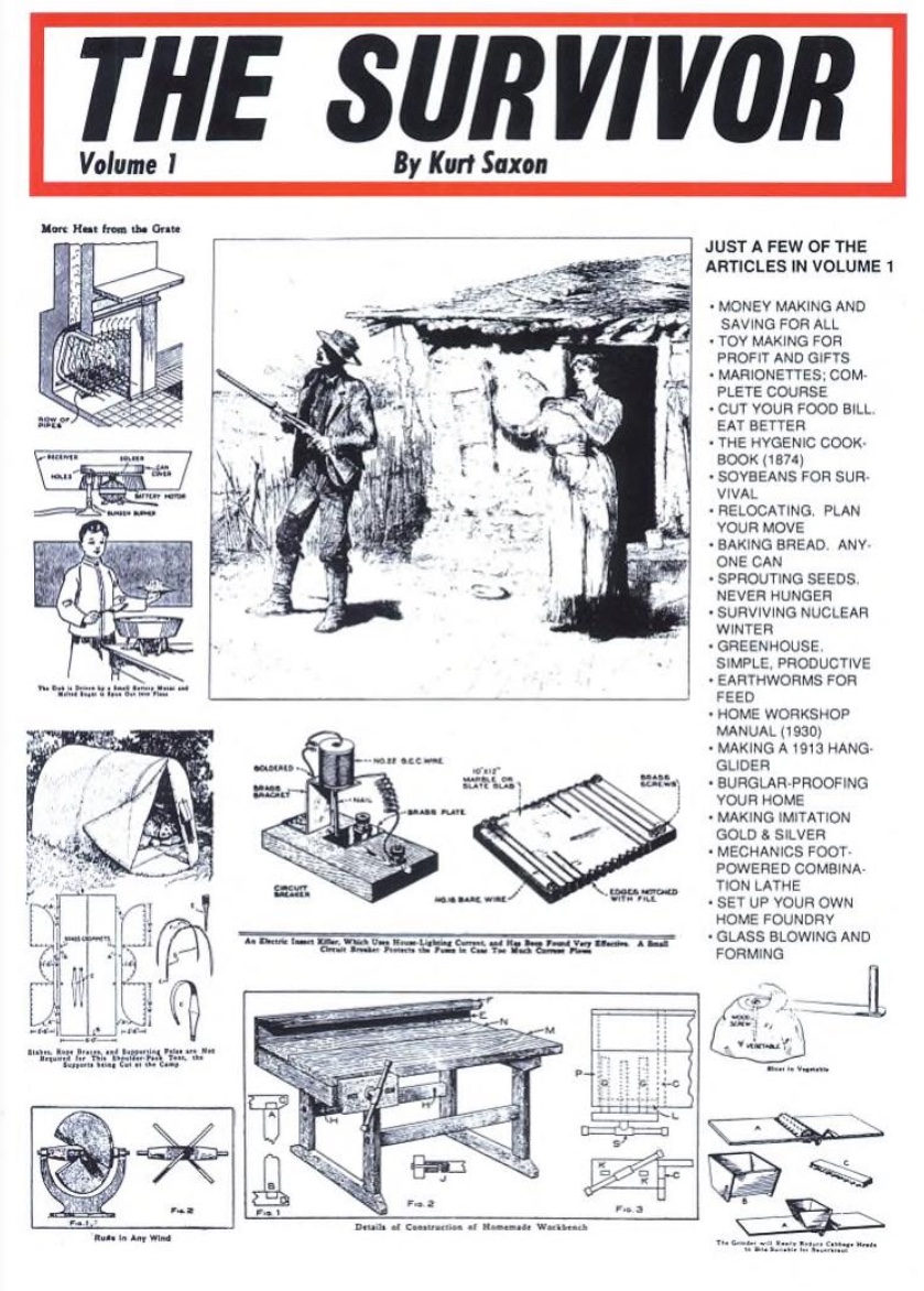 Like Capella, Saxon believes that knowledge of esoteric technological subjects will be forgotten if society collapses. Even now, people have forgotten the survival skills and know-how that were essential in rural America just a generation or two back. So Saxon began to collect simple how-to ways of getting-by in a future world if people find themselves in villages without commerce or government: