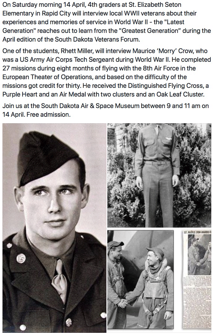 National News Bomber against the Third Reich: Maurice Crow at Ellsworth Museum April 14 by Brad Ford • April 1, 2018 • 0 Comments More photos and story in Black Hills Faces Magazine Share this:FacebookX