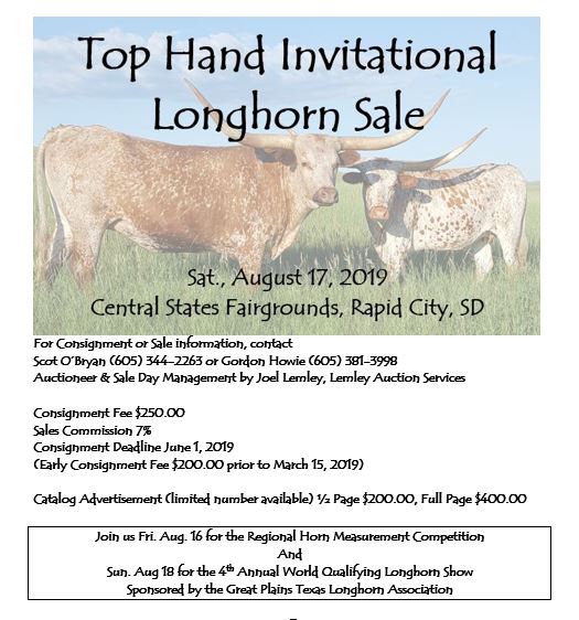 *** If you would rather not drive all the way to Texas to a Longhorn Sale, join us at the Central States Fair for the FIRST Annual Top Hand Invitational Longhorn Sale: