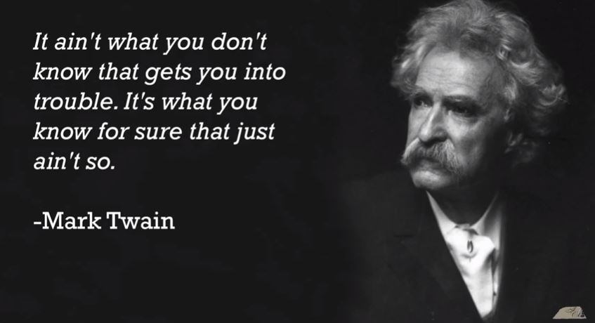 Mark Twain has been credited with the following statement: “It ain’t what you don’t know that gets you into trouble. It’s what you know for sure that just ain’t so.” Tragically I have observed this first-hand in the youth culture of America.