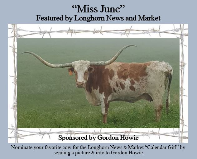 Owned by Gordon & Connie Howie, When we scheduled her as “Miss June” we did not know she would now be calling our ranch her home. She is a welcome addition to our donor team!! https://ghowie.com/longhorn-cows
