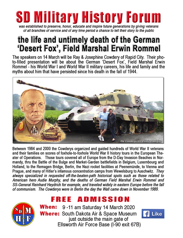 National News General Erwin Rommel Coming to South Dakota by Brad Ford • February 10, 2020 • 0 Comments Perhaps one of the best lectures on World War II that you’ll ever hear. Share this:FacebookX