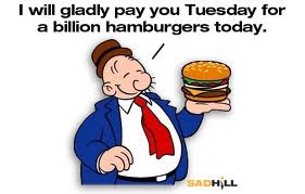 Some of you may not be old enough to remember Wimpy. Wimpy was Popeye’s friend in cartoons. He was very intelligent, and well educated, and also something of a scam artist.